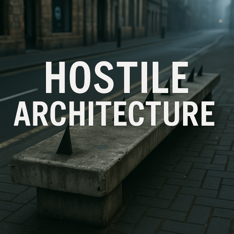 Op het eerste gezicht lijkt dit een bankje zoals alle anderen. Maar kijk nog eens goed. De scheidingsbalken, de scherpe randen, het gebrek aan comfort—alles aan dit ontwerp zegt: hier slaap je niet. Dit is hostile architecture: ontworpen om mensen weg te houden in plaats van welkom te heten.